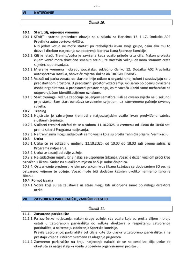 10.2.2 Službeni trening održati će se u Subotu, 27.09.2025.godine.